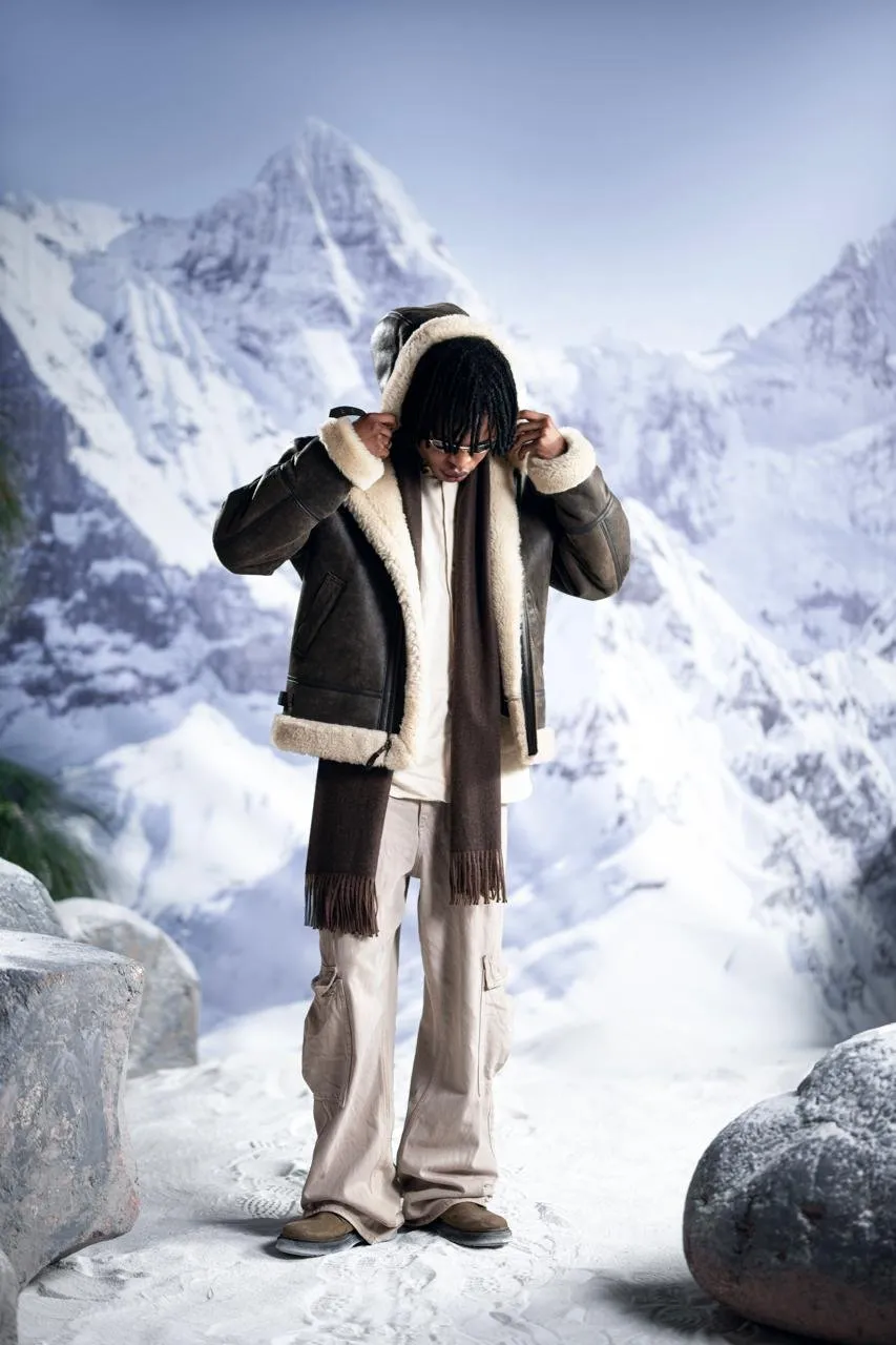 Bomber jackets with shearling collars have a strong heritage in military and streetwear fashion, blending rugged functionality with refined aesthetics.
