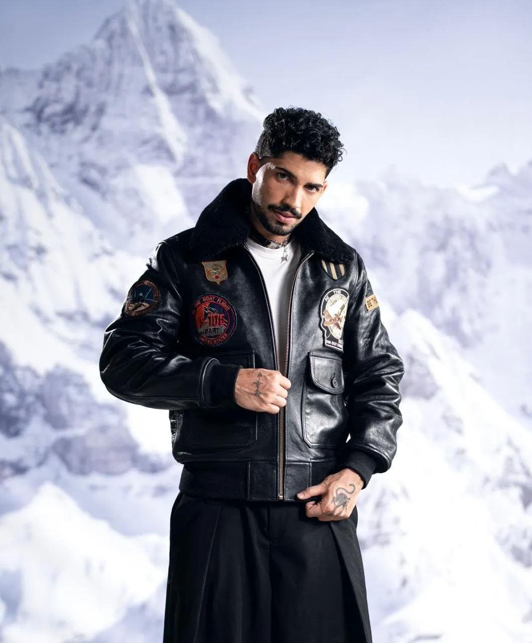 Bomber jackets with shearling collars have a strong heritage in military and streetwear fashion, blending rugged functionality with refined aesthetics.